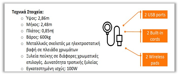 - Charging of mobile devices for visitors (wired & wireless).